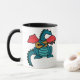 Uppsluppen gullig tecknadblåttdrake som leker gitarrmugg- eller travel mugdesignen. Han är rolig, och fullt av personlighet och dig kan tillfoga beställnings- text, när den beställer. Underbar gåvaidé.