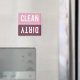 Ro rosa, burgundi och vit CLEAN | DESS magneter. Vänd eller vänd magneten för att rengöra eller smutsa fram diskmaskinen för att informera familjen om diskarna inuti. Enkel modern design.