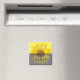 En reversibel diskmaskinsmagnet med en gult solros som anger om diskarna inuti är rena eller smutsiga.