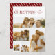 Send the perfect, beautiful holiday greetings with these 5 photo collage Christmas cards! Featuring stylish, modern typography at the top, reading "Merry Christmas", with five photo templates filling the rest of the card. The back of the card contains simple diagonal stripes in white over a red background that matches the front.