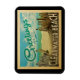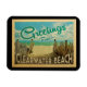 Detta presenterar hälsningar från design för vykort för Clearwater strandvintage en sandig strand med ett härligt turkoshavvatten, och ovanför havet, fördunklar en blå himmel med billowy vit. I vintage resorstil.