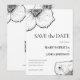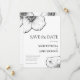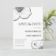 Gör ett bra första intryck på dina gäster med detta monokroma blomsterformella platta Save The Date-kort. En stor rubrik läser SAVE the DATE, eller anpassa den för att ange SAVE OUR DATE. Liten, kursiv, men klassisk stil anger: för bröllopet mellan. Denna rad följs av två versaler, underrubriker som anger namnen på bruden och brudgummen. 💍 Ett textblock i tidlös serif-stil anger dagen och året, följt av bröllopsplatsen. En ytterligare rad säger att en formell bröllopsinbjudan kommer att följa. All text är anpassningsbar för att återspegla dina bröllopsdata. 🌸 Eleganta, fina linjeteckningar av Clematis montana-blomblad ramar in anslaget på framsidan. Baksidan av vykortet erbjuder en anpassningsbar QR-kod som länkar till din webbplats. Nedanför finns brudens och brudgummens initialer, följt av din webbplatsadress. Anpassa och anpassa alla rader efter behov. Två olika konstnärliga Clematis-blomningar handritade teck