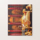 This striking fantasy jigsaw puzzle portrays a regal queen inspired by Cleopatra, reclining in a lavish ancient palace surrounded by golden columns, sculpted lions, and rich red accents. The scene radiates power, beauty, and timeless luxury, blending historical inspiration with dramatic fantasy styling.
