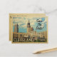 Vintage Cleveland Save Date-vykort med en stadskyltvy. Den här coolans halvsekelmodell är det perfekt sättet att samla gäster till ditt Cleveland Ohio-destinationsbröllop.