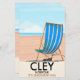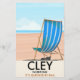 Cley Norfolk vintage resor helgdag poster om en stripe-däcksstol på sandstranden.