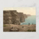 Fotomekanisk utskrift av Cliffs i Moher i grevskapet Clare i Irland, som togs mot slutet av 1800-talet. Bilden visar människor som står ovanpå klipporna och tittar på det irländska kustens storartade syn på Atlanten. Fotografi från kongressens Bibliotek LC-GRÄV-ppmsc-09847.