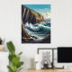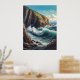 Cliffside Brown Blue Ocean Vågar Seaside Poster