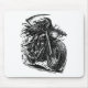 A dark and powerful illustration featuring the Grim Reaper riding a rugged vintage motorcycle. With a flowing cloak and towering scythe, the skeletal rider speeds forward like a ghost of the open road.