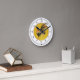 Tupp började framför gult sol. Bilden visar sprickor från det ursprungliga keramiska arbetet av Nora Chen. Röda coxkakor, grönt och bruna fjädrar. Svarta siffror i ring-segment som markerar minuter.