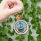 Closeup on Prag Astronomical Clock, Czech R. Rund Silverfärgad Nyckelring