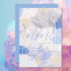Den här abstrakten, modern "vi är på molnet nio/nio" inbjudningskort för möhippan, har gyllene bågar med blå himmel och moln i gouacher-målpenseldrag. Den omvända sidan har en himlar blå bakgrund med geometriskt mönster. Anpassa efter dina behov. Du hittar fler matchande produkter i min butik.