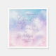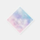 Drömlig och romantisk möhippa papper napkin med vattenfärgad illustration av lila, rosa och blå himmel med moln och stjärnor.