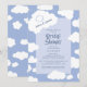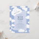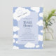 Rolig bröllopsinbjudan med fantasifulla moln på en blå himmel bakgrund med det förlovade paret på molnet nio. Anpassa alla fester detaljer i stilfull blå typsnitt för att göra det till ditt eget. Rolig och glad inbjudan kommer säkert att få alla att bli upphetsade inför den stora dagen. Missa inte chansen att ha roligt - beställ din idag!