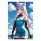 En uppfångande kattorienterad figur med flytande silver-lås och uttrycksblått ögon. Hennes moderna tealklänningar och mörk handskar ger en elegant kontrast mot det dynamiska himmel, perfekt för konstutskrifter och konfektion.