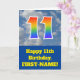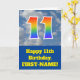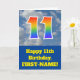På framsidan av den här roligtens 11:e födelsekortdesign finns en representation av ett grumligt blå himmel, tillsammans med siffran 11 med ett flerfärgat regnbågsspektrum som gradientutseende. På fronten finns också ett meddelande om födelsedagen hälsning, inklusive ett anpassade som tar emot namn. Insidan innehåller ett hälsning-meddelande från personligens födelsedag, eller kan kanske tas bort och lämnas tomt om ett meddelande ska skrivas för hand i stället. Ett sådant här födelsedagskort i anpassningsbarna kan vara ett roligt sätt att skicka önskemål till någon som firar sin elfte födelsedag. [~Z0000370]