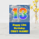 På framsidan av den här roligtens 13:e födelsekortdesign finns en grumlig bild av blå himmel, tillsammans med siffran "13" med ett flerfärgat regnbågsspektrum som gradienten mönster. På fronten finns också ett födelsedagsmeddelande från hälsning, inklusive en anpassad mottagare av namn. Insidan innehåller ett hälsning-meddelande från anpassningsbarnas födelsedag, eller kan kanske tas bort och lämnas tomt om ett meddelande ska skrivas för hand i stället. Ett sådant här födelsedagskort i anpassadet kan vara ett roligt för att skicka önskemål till någon som firar sin trettonde födelsedag. [~Z0000370]