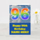 På framsidan av denna 96:e födelsedagskalenliga hälsningskort i roligten visas en bild av ett grumligt blå himmel, tillsammans med siffran "96" med ett flerfärgat regnbågsspektrum som gradienten mönster. På fronten finns också ett meddelande om födelsedagen hälsning, inklusive ett anpassade som tar emot namn. Insidan innehåller ett hälsning-meddelande från anpassadets födelsedag, eller kan kanske tas bort och lämnas tomt om ett meddelande ska skrivas för hand i stället. Ett sådant här födelsedagskort i anpassningsbar kan vara ett roligt för att skicka önskemål till någon som firar sin nittiosjätte födelsedag. [~Z0000370]