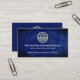 På andra sidan är logotypen silver i ett blått omslag överst, följt av ditt prestigefyllda namn, jobbnamn och kontaktuppgifter.