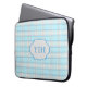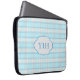 Monogrammed Laptop sleeve i ett aqua & grått plaid mönster. Använda alternativet Anpassa om du vill lägga till initialerna. Använda alternativet Anpassa om du vill skriva om textblocket eller ändra teckensnitt, storlekt eller färg.