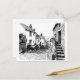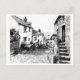 En handdragen svart och vit skiss av Clovelly, Devon, en historisk berömd för fiskets branta kobolade gata, stenstuckor och pikturesque. Denna illustration av linjen vintage-stil fångar den engelska kustens charm och dess tidlösa arv. Perfekt för älskare av resor, sjöfartshistoria och traditionella byscener.