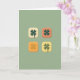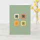 This card features four clover icons set inside rounded squares, arranged in a neat two-by-two grid on a muted sage-green background 💚. Each square feels like a small keepsake, sitting evenly spaced as if they’re close friends gathered side by side. The palette mixes soft cream, warm terracotta, gentle ochre, and pale lemon yellow, with clovers in deep forest green and one in ochre for a cozy, grounded look ☘️. A light shadow under each rounded square adds a touch of depth, like the shapes are resting just above the surface. Two clovers (top-right and bottom-left) are simple, stemless silhouettes, while the top-left and bottom-right clovers include a slim stem that leans gently, like a quiet nod between companions. There’s no main message text on the front, leaving the centered grid to do all the talking with color and shape. The four rounded squares—cream, terracotta, warm orange, and pale yellow—each hold a clover in dark green or ochre, aligned centrally against the calm sage field.