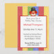 Låt denna leende clown skicka ut dina födelsedagsinbjudningar med en färgexplosion. Clownen håller en skylt med din festinformation. Använd vår enkla mall för att anpassa dina barns festinbjudningar med din information.