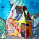 Bilderna är färgfulla lycklig clown ansikte