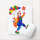 En munspets av god bra med en handmålad papper kollageutformning av en glad clown med ballonger och en stjärna.