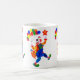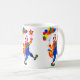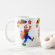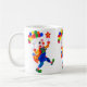 Vit mugg av bra kvalitet med en handmålad papper kollageutformning av en jolleclown med ballonger och en virvlande stjärna. Se även matchande hälsningskort, presenter och kläder. Dishwasher och mikrovågsugn säkra och tillgängliga i två storlekar.