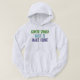 This hoodie is much better than I expected. top quality, true sizing, and really comfy. I was a bit worried that the lettering would be too dark on the navy blue hoodie, but once it arrived it was perfect. Easy to see the words, and the quality of the wording is fabulous. I will be buying more hoodies in future