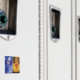 Färgfull,vit,vibrant,konstnärligt clown porträtt,vattenfärgade målningar i,lila,fuchsia,rosa,röd,gult,blå,grönt färg inspirerad av Venedigs karnival.