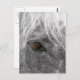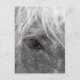 Ett närfoto av ansikte från en vacker Clydesdale-häst med flytande brunt ögon och en snövit mane. Vykort är perfekt för skapar bilder i miniatyr att hänga på väggen och en billigt men chic alternativ till dyra poster utskrifter.