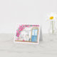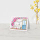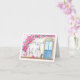 Den här handmålade vattenfärgen och pennbilden har en charmerande rosa pudel som sitter utanför en parisisk café och firar sin födelsedag i stil. Med ett glas rött vin, en spridning av ost, bröd och druvor, är det ett vackert kort för perfekt för en medarbetare.