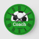 Väggklocka: Elegant klocka med fotboll på en grön plan och text "Coach" eller personligt namn - fotboll, fotboll mode gåvor, faders dag / sportfan