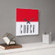 Den här moderna, sportiska designen har ett pulserande, starkt, rött färg-block med matchande flytande streck mot en skarp, vit bakgrund. Den höga COACH-texten i den vita nedre halvan kan vara personlig.