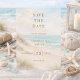A watercolored sandy beach, sand dunes, ocean waves background. Personalize and add a date and your names.