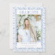 Celebrate the new school graduate with a customizable DIY grandmillenial photo graduation announcement card. Edit your blue chinoiserie coastal grandma photo graduation annoucement card & school graduation party invitation with all of the graduation party details.