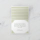 This whimsical coastal folded wedding thank you card features a vintage sun motif, palm trees, lace border, and stylish sage green stripe background. Perfect for a beach or California destination wedding. Created by Simply Farmhouse Press.