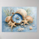 Coastal Compass Starfish Print | Wall Poster