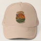 This fun hat is perfect for beach bums, surfers and anyone who lives in flip flops and a coastal mindset. The kitschy "Coastal Lifestyle" throwback beach art is pure Florida kid chaos! This surfer boy already knows how to handle an alligator and catch a wave, no surfboard needed. He's a Florida native for sure! The surf beach at sunset scene has bold orange, red and yellow colors, complete with palm trees blowing in the tropical breeze. The cheeky vintage inspired surfing graphic will make you laugh. | This design is available on multiple hat styles. Choose a trucker, dad, snapback, or bucket hat from the Product Style menu above.