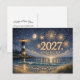Coastal Lighthouse Fireworks Happy New Year 2027 Helg Vykort