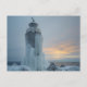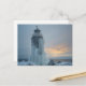 coastal lighthouse in winter storm vykort
