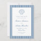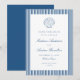 Invite guests to save the date with this coastal navy-blue stripe wedding save the date, featuring a hand-drawn seashell illustration and a classic striped border for a timeless coastal look. Perfect for beach weddings, coastal weddings, seaside ceremonies, and destination weddings, this design showcases the couple’s names in elegant calligraphy script, with the wedding date and location displayed below in classic serif lettering. This shell wedding save the date is ideal for couples planning a waterfront or ocean-inspired wedding. The back is blank, giving you space to add your wedding website, photos, or additional wedding details.