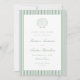 Set the tone for your wedding with this sage green wedding save the date, featuring a hand-drawn seashell illustration at the top and a classic striped border. The couple’s names are displayed in elegant calligraphy script, with the wedding date and location arranged below in classic serif lettering. This design is a great choice for beach weddings, seaside ceremonies, and destination weddings, offering a refined take on nautical-inspired wedding stationery. The back features space for a wedding website, photos, or additional wedding details.