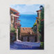 Sceniskt gatuperspektiv på Castiglione della Pescaia, en söt kuststad i Italien Toskana. Ursprunglig oljemålning av Daniel Fishback.