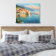 A canvas representation in the impressionist pictorial style of a seaside village with a direct view of the sea.