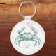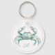 This monogrammed keychain features a beautiful coastal crab in soft watercolor shades of blue and green on white. Personalize the monogram on the front with your choice of initials and your choice of contact information on the back.