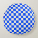 Cobalt and cream checkerboard pattern rund kudde