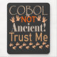 COBOL is NOT Ancient! This bold and witty design uses playful dinosaur footprints to challenge the myth that COBOL is outdated, celebrating its enduring power in modern enterprise systems and legacy tech culture.