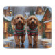 This festive design captures the joyful spirit of the holiday season, featuring an adorable dogs.Nestled in a winter wonderland, complete with a decorated Christmas tree, and beautifully wrapped presents. Snowflakes gently fall, adding a magical touch to the scene, while the vibrant colors of the holiday decorations create a warm and cheerful atmosphere.